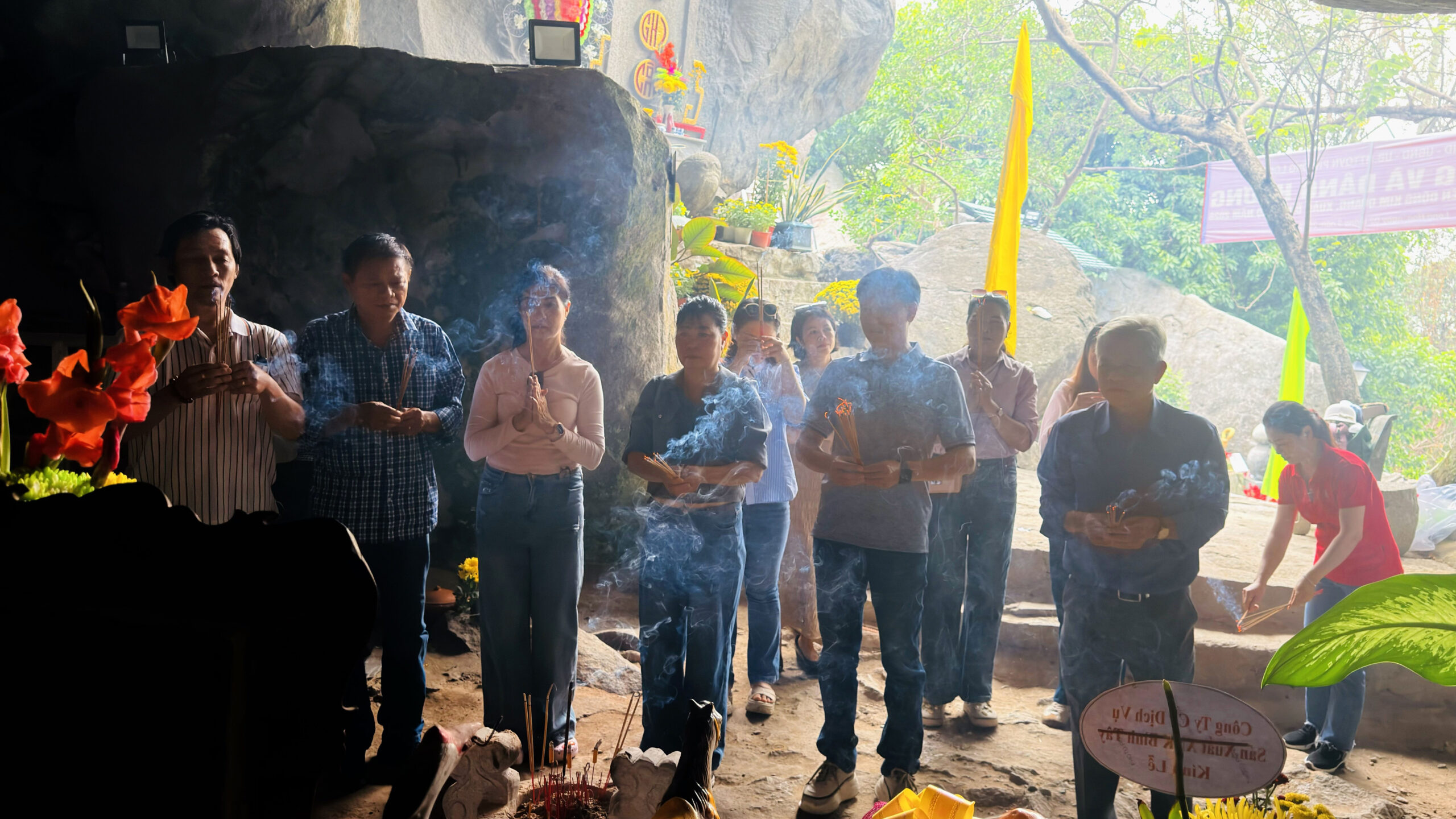 Tại cửa động, không gian trở nên lắng đọng khi mọi thành viên cùng thắp nén tâm hương tri ân các anh hùng liệt sĩ đã ngã xuống vì độc lập tự do. Đoàn được nghe kể về “Sự tích động Kim Quang” và những kỳ tích đánh giặc của quân dân Tây Ninh, giúp thế hệ trẻ hiểu sâu sắc hơn về truyền thống “Uống nước nhớ nguồn”.